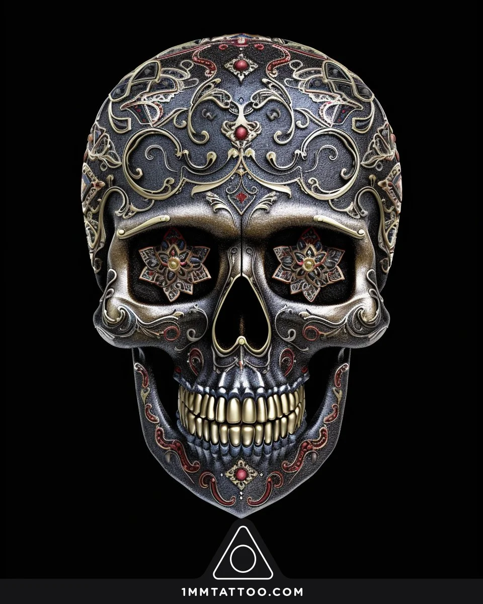 ORNAMENTALLY Detailed, Ultra-Realistic Skull Tattoo Design