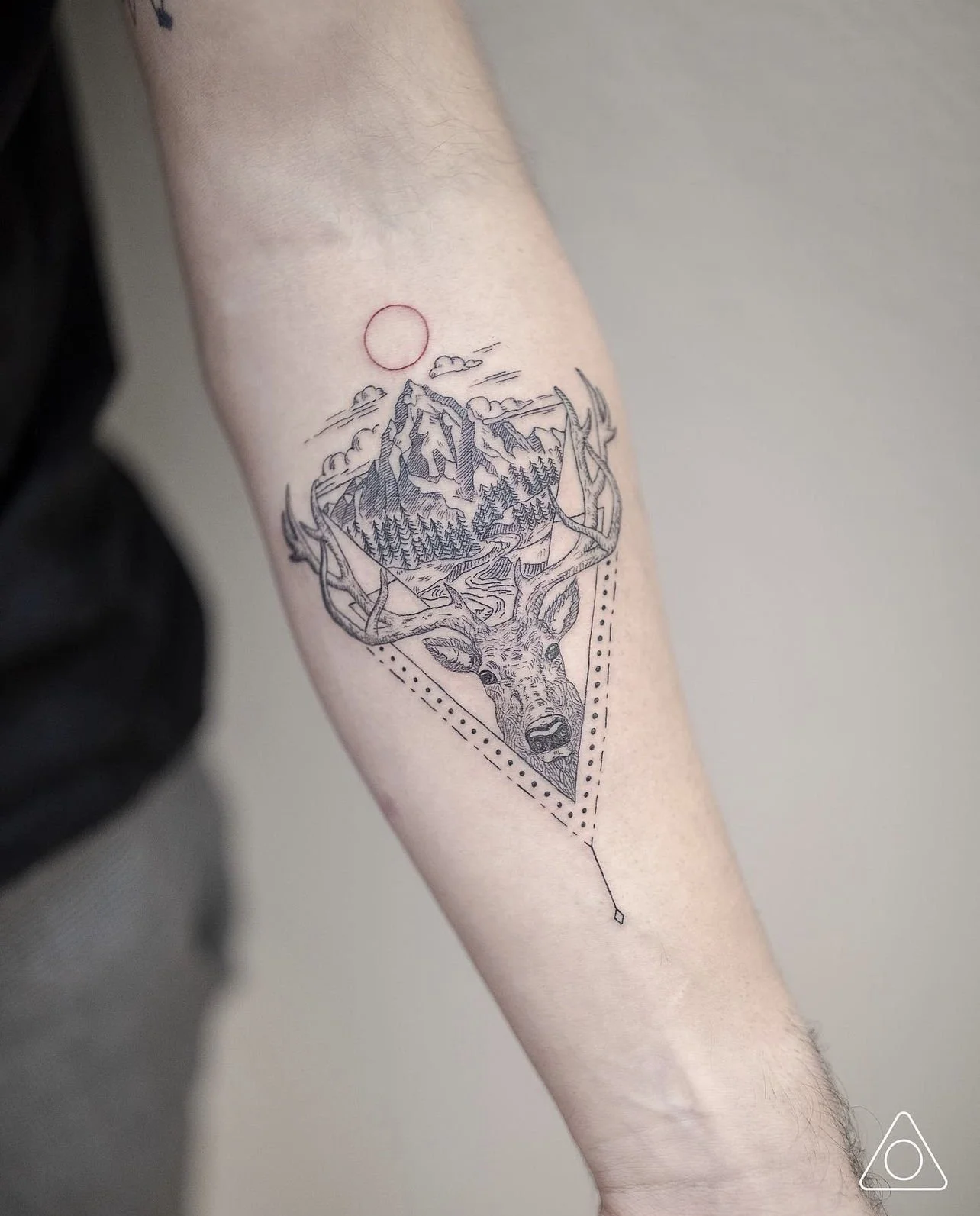THE MOUNTAIN DEER Dec 5 Written By 1MM Studio fine linegeometricminimalwild lifelandscapedotworkdeermountainssun 1MM Studio 1MM Creative Content & Design Studio https://1mmstudio.com